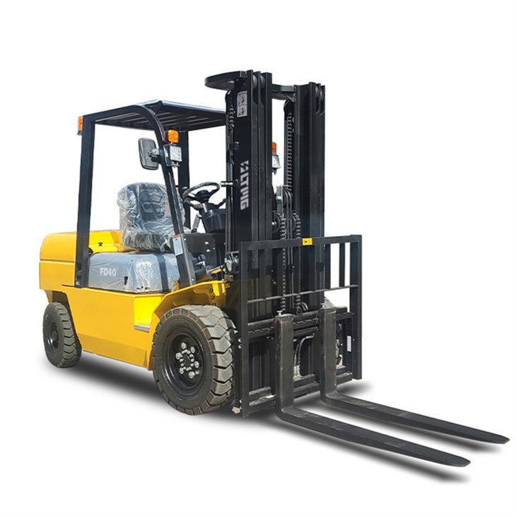 This 4-ton diesel forklift has a beautiful appearance and adopts the latest ergonomic design, which makes it comfortable, safe and efficient to operate. Its technical performance can meet the needs of different domestic and foreign customers. It adopts an adjustable steering wheel and seat, and the reasonable layout of each operating system fully reflects the principle of ergonomics and reduces the labor intensity of the operator. The engine is equipped with a fully floating shock-absorbing device, a steering axle elastic connection, and a low-torque steering gear, which makes it easier to turn in place; the suspended high-strength integral hood with built-in heat and sound insulation materials, and the bottom plate operating space is simple and spacious, which ensures the comfort of the whole machine operation.